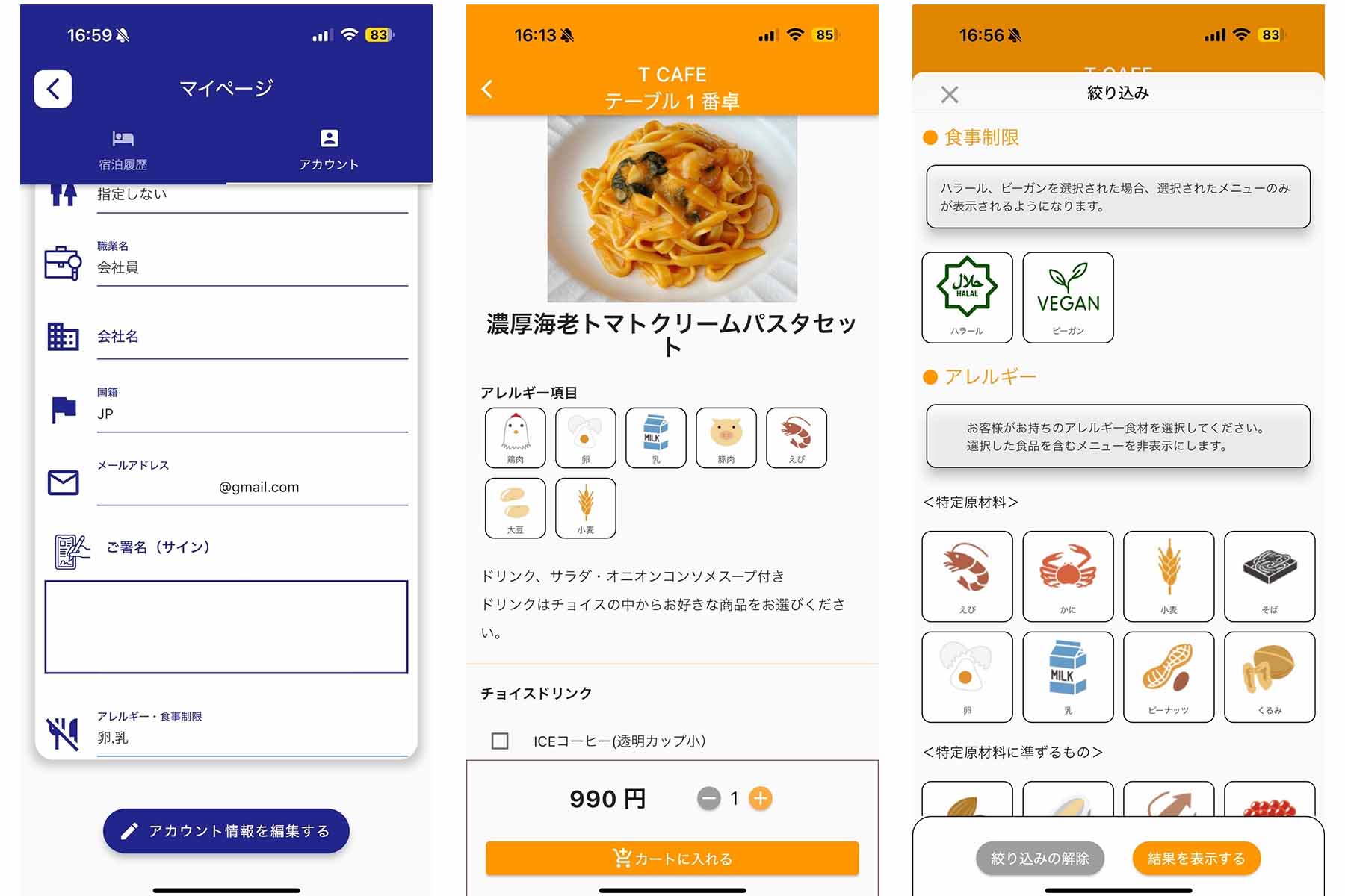 現在は、お客様のアレルギー情報を事前にアプリ(*1 THL App)に登録することで、該当する食材を含むメニューが表示されないように制御されたモバイルオーダーシステムの運用を行っています。(ハラールやヴィーガンといった多様な食の制限にも対応可)