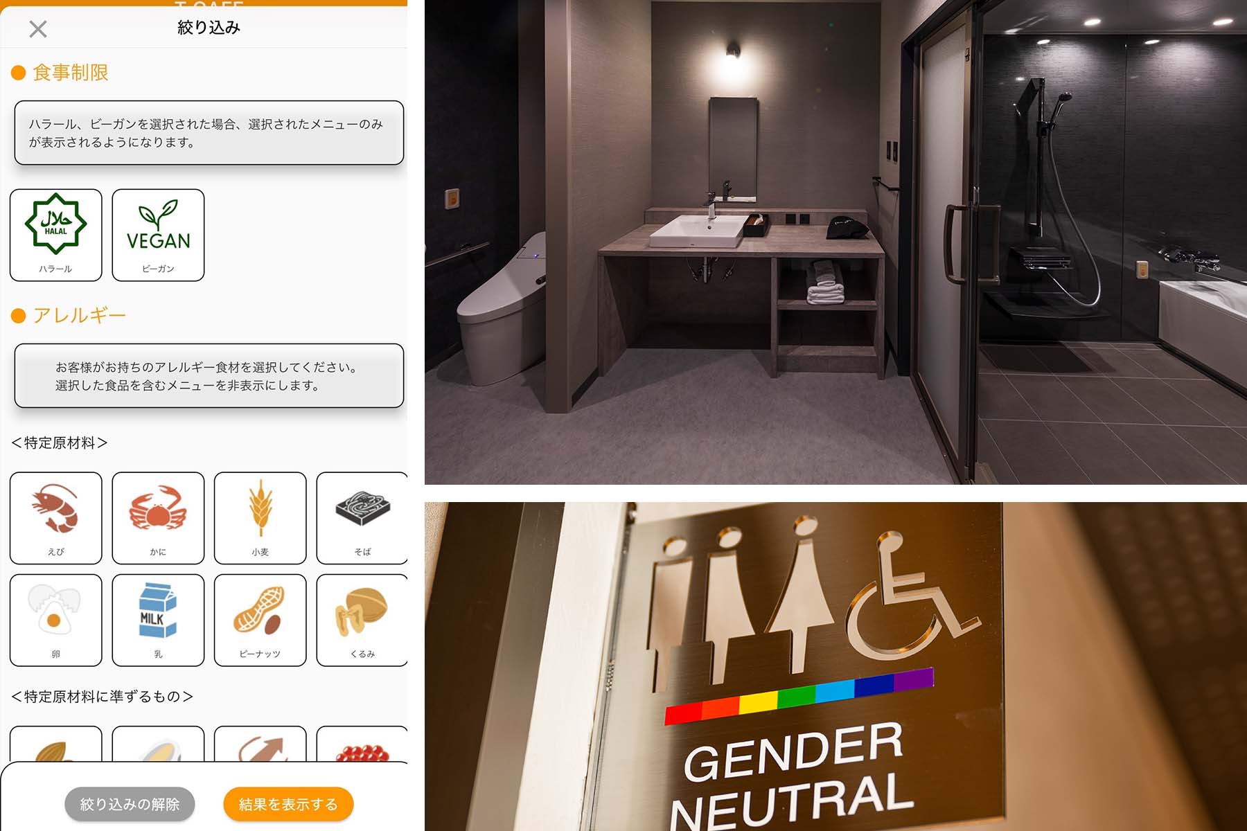 障がいのあるお客様への配慮(客室のユニバーサルデザイン)、LGBTQへの理解、ハラールやビーガンへの対応など、多様な価値観や背景を持つすべてのお客様が安心して快適に過ごせるよう、THLのホテルでは包括的な宿泊サービスを提供しています。