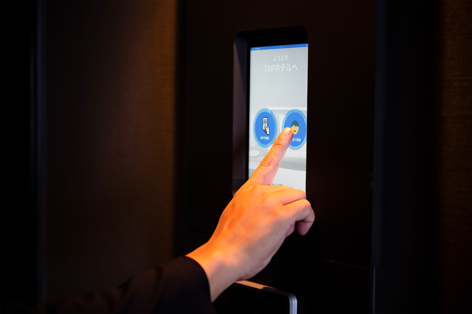 アプリ内で顔登録を行えば、手ぶらで客室への出入りが可能になります(顔認証解錠)。
